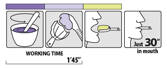 • Extra fast setting time in mouth 30”