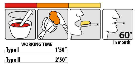 - Fast in mouth, minimum setting time 60”