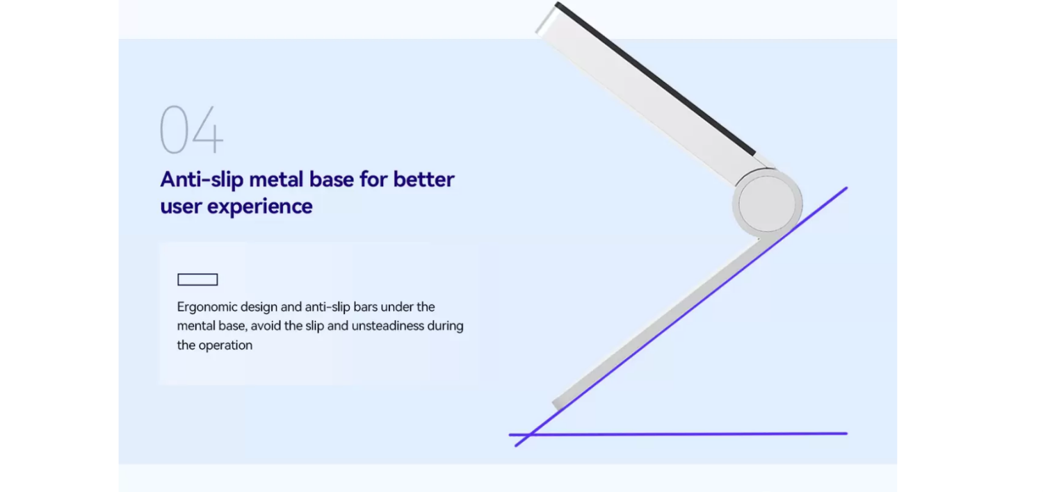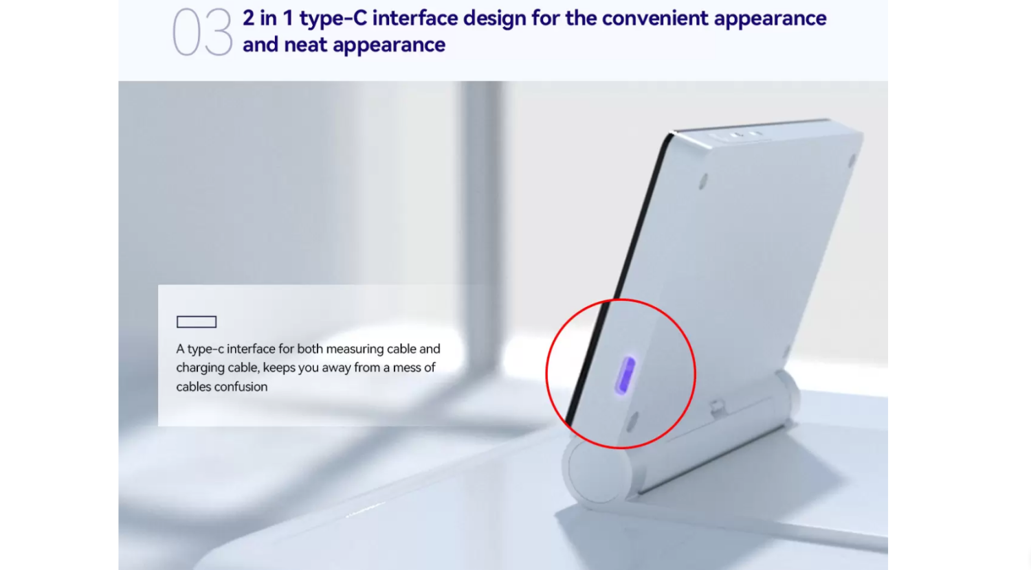 multi-angle use, voice alarms, an 850mAh battery (6hr life), Type-C charging,